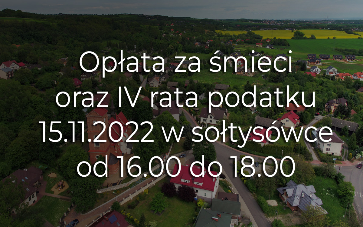 Zapraszamy wszystkich mieszkańców 17.10.2022 (poniedziałek) w godzinach 16.00-18.00 do Sołtysówki w centrum Bolechowic, gdzie będzie można zapłacić za wywóz śmieci za miesiąc wrzesień.